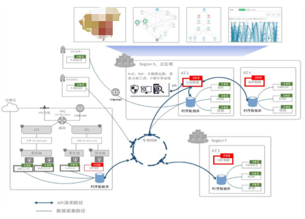 在云原生环境下企业客户主要面临的挑战主要体现在网络分层以及弹性业务充分体现了监控保障的难度,由此可以将挑战归纳为三点:对象数量大、波动性强以及关系复杂。举两个例子,应用在SOA、MSA架构下,更多地以Ingress、Service、POD在呈现,网络IP动态变化。如果仍然单独以传统的IP视角进行可视化以及运维保障,明显是不够的,存在短板。迫切需要将网络视角与平台、事件、应用关联起来。另一个典型的例子是“端到端分析”,在物理网络段,可以通过有限的分光镜像点来描述、展示路径,但中断于池内或云内网络段。云内网络处于“黑盒”状态,云内又包含有服务间交互访问、东西向网关、负载均衡、地址转化等各个环节,缺乏有效的保障手段,这对一个生产环境来说是不能接受的。