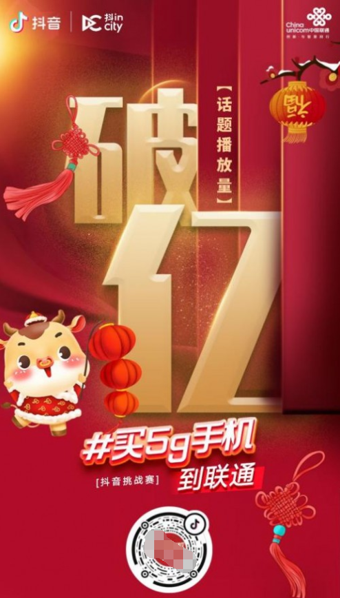 5G时代已到来,5G手机成为当下潮流新趋势。为增强品牌与用户的深刻联结,辽宁联通联合抖音平台发起#买5g手机到联通 抖音挑战赛,将“买5g手机到联通”品牌概念潜移默化植入人们生活。