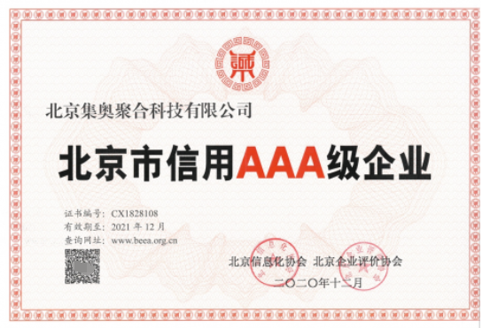 北京市信用AAA级企业是北京市企业信用最高评级,这也充分体现出行业及机构对集奥聚合过去几年经营发展成果的高度认可。同时此次获评,公司也将在北京市企业信用信息公示系统、北京市公共信息服务平台进行公示,并可享受相关部门绿色通道和便利优惠措施。