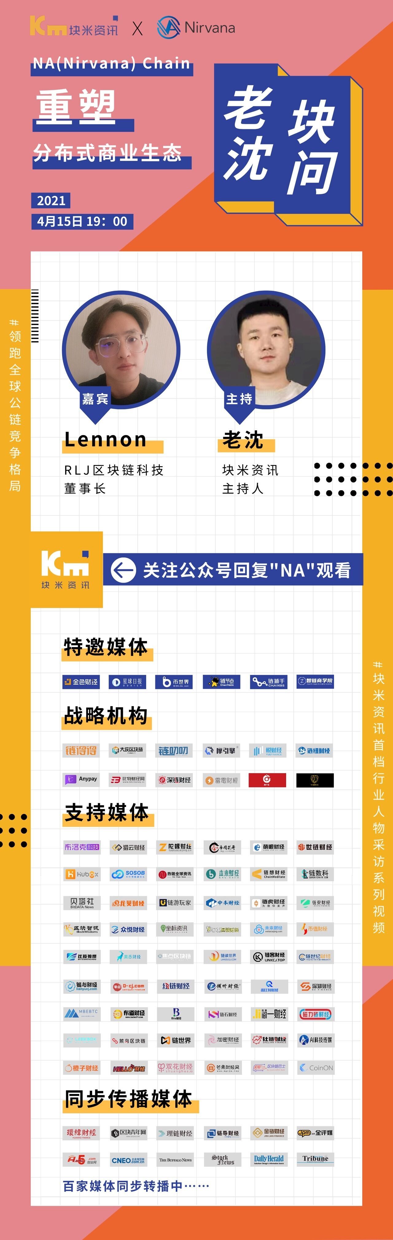 老 沈:大家好。我是块米财创始人老沈,本期我们还是与NA(Nirvana)Chain的RLJ(睿霖嘉)区块链科技董事长Lennon就“现有公链的痛点,以及NA能提供的解决方案以及产品优势”进行更深度的讨论。