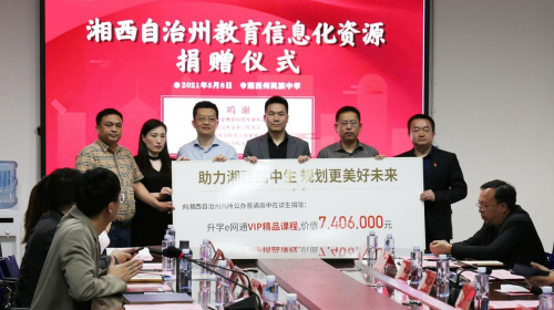 5月8日上午,湘西州教育信息化资源捐赠仪式在湘西州民族中学举行。铭师堂教育联合武汉大学校友企业家联谊会、武汉大学浙江校友会、武汉大学长沙校友会企联分会,向湘西自治州6所公办高中共捐赠价值740.6万元的教育信息化产品。