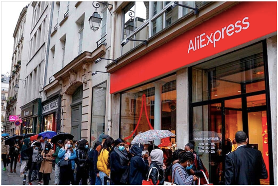 法国消费者冒雨在速卖通巴黎快闪店门口排队