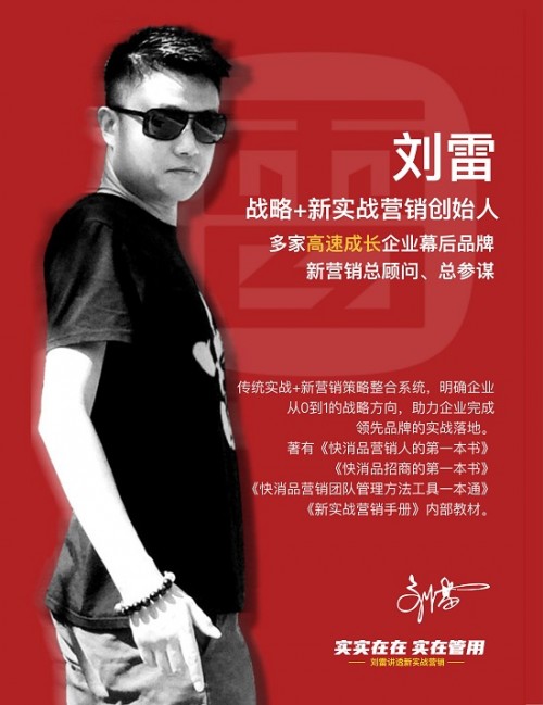 在国内营销界,刘雷可以称得上是新实战营销的领军人物。他继承了传统的营销理论,又在中国本土特色的基础上做了很多创新实践。作为战略+新实战营销的创始人,他担任过众多成长型企业的营销顾问和总参谋。