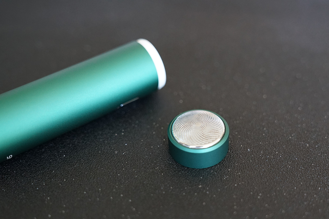 这款剃须刀给人的第一印象就是非常小巧,118*32*32的尺寸,净重只有136g,这款是地球绿配色,握在手里犹如一个袖珍手电筒,体积小巧分量很轻因此特别适合差旅出行等场景使用,早上起床晚了来不及刮胡子也没关系,直接揣在兜里半路上就能解决问题了。