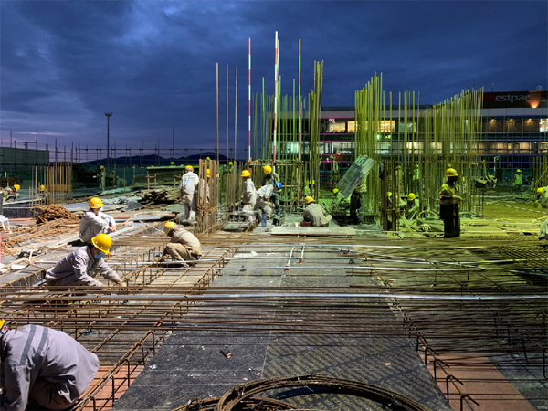 项目自开工以来,历经多重困难与考验。前期由于全球疫情形势蔓延,巴新政府宣布国家进入紧急状态,进入巴新的国际航班一度中断,人员入境巴新困难。“既要克服项目人员极度短缺,保证施工进度,又要克服疫情对于现场及工人情绪的冲击,确是两难问题。”生产经理姚周峰如是说道。针对疫情影响对项目履约的冲击,整个项目团队上下一心,一方面大力组织夜班、节假日抢工,紧抓相关防疫措施,确保现场施工稳步推进;另一方面积极与巴新政府沟通协商人员入境,协调组织中国建筑及下属各分包在全巴新境内可调派的劳动力资源、属地资源、第三国劳务资源等赶赴现场,抢抓现场进度。