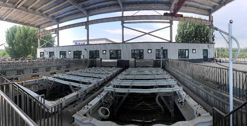 其中,碧水源振动膜生物反应器技术依靠电机带动MBR组器机械振动,即水不动膜动,以代替传统高强度曝气吹扫的膜污染控制方式,使得投资成本和电耗均明显下降。在生化阶段,采用“两高一低”的强化脱氮除磷技术,即高污泥浓度、高回流比、低溶解氧,在不外加碳源的条件下,出水水质可优于地表水Ⅳ类标准,总氮可实现不高于5 mg/L,吨水能耗可降至0.3度电,与传统非膜深度处理工艺基本持平。与传统曝气MBR工艺相比,可实现碳减排25%-30%,以处理规模为10万吨/日的污水处理厂为例,一年可降低能耗365万度电,多消减总氮逾百吨。