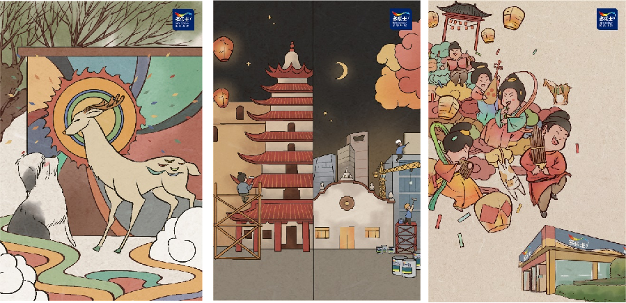 多乐士用涂料绘制的 《多乐士致敬敦煌》系列插图