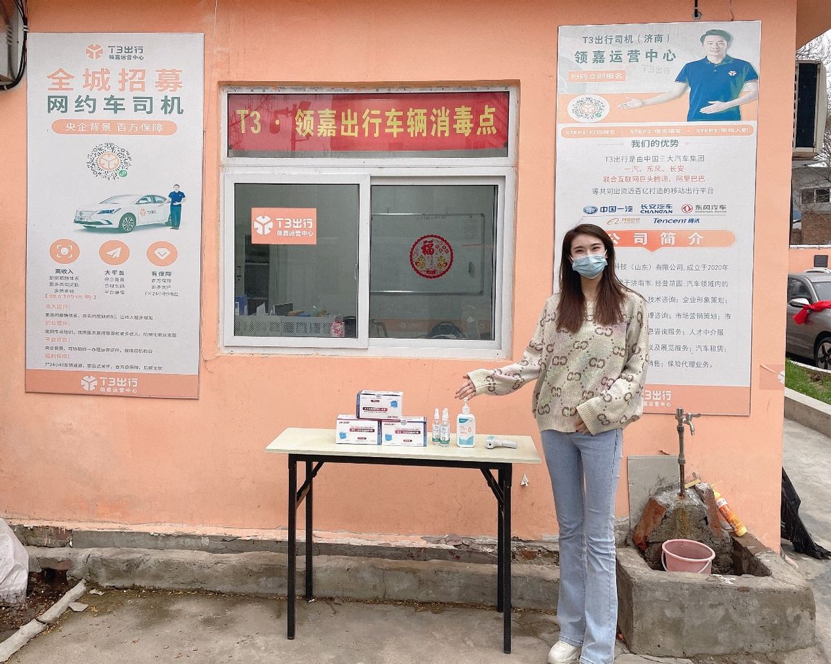 此外,T3出行已经在济南设立了4个防疫消杀点,为司机免费发放口罩、消毒液等防疫物资,并提供车辆免费消杀服务。