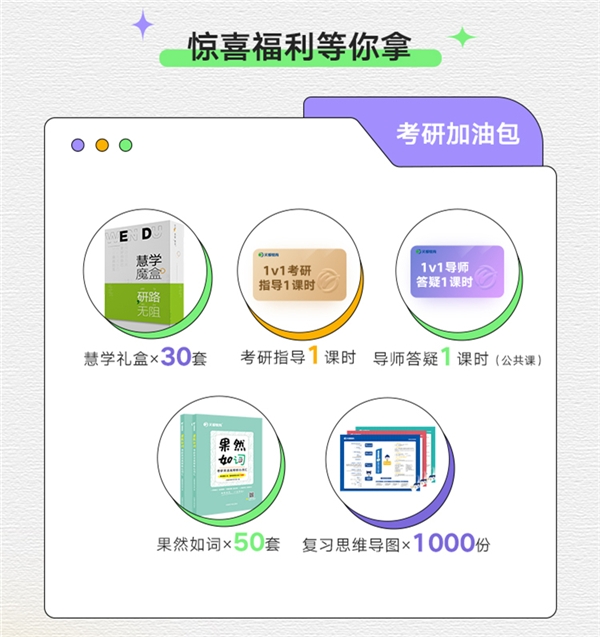 除了干货十足的经验分享和教师交流,文都教育还为观看直播的同学们准备了30套慧学礼盒、50套《果然如词》、1000份复习思维导图以及1V1考研指导、1V1导师答疑等惊喜福利,为同学们的备考之路加油助力。