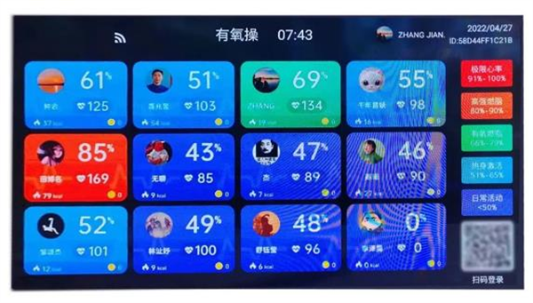 操厅大屏实时展示训练热量消耗排行榜,随时掌握训练动态,保证营员都在安全科学的强度区间,营员之间PK打榜,训练更有趣。