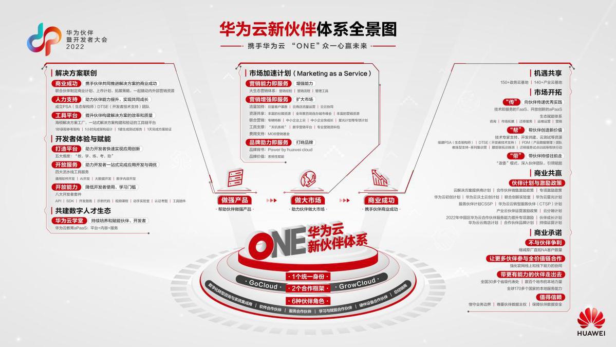2022年6月15日,以“因聚而生 为你所能”为主题的2022华为伙伴暨开发者大会线上开幕。会上,华为云正式发布了“以能力为核心”的新伙伴体系,并提出“All in One,One for All”的新生态理念。此外,参会嘉宾共同讨论了如何围绕新生态体系,持续生态创新,共建产业新生态。