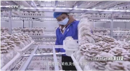 2月10日,中央电视台科教频道CCTV10《时尚科技秀》栏目播出2022新科技特别节目《智慧蘑菇工厂》,主持人向电视观众重点介绍了一个超级蘑菇工厂背后的先进技术,也讲述了一个基层党组织带领当地老百姓脱贫致富,实现乡村振兴的故事,节目一经播出,受到各方好评。