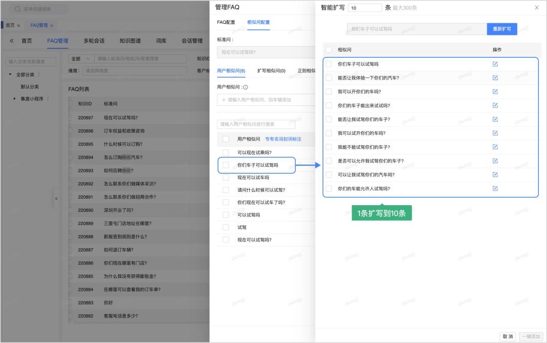 充分调动大模型丰富的语料知识,快速完成对相关语料的快速扩写,减少90%的人工语料撰写时间;