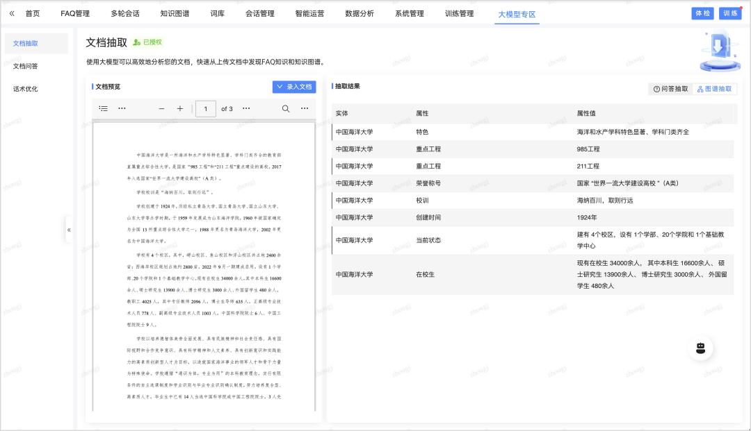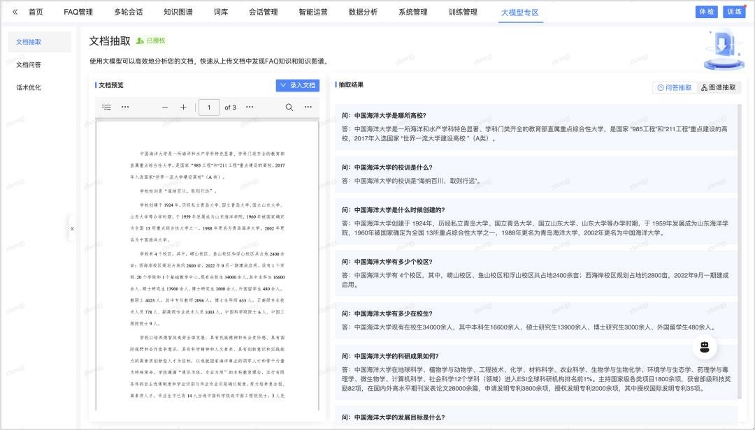 直接将结构化或者非结构化的文档上传到后台,自动提取文档中的知识并形成标准、自然的问答内容;