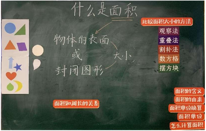 结合科大讯飞智慧课堂电子白板中的数学图形、画笔、板擦以及H5动画资源帮助学生更加直观的了解封闭图形和开放图形的面积,为学生提供更加生动、直观、互动的学习体验,促进学生对数学知识的理解和掌握。借助智慧课堂的白板功能直观感受面积的含义,同时寻找生活中的面积,感受数学来源于生活,并反哺于生活。