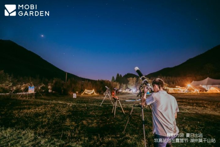 夜幕低垂,在享受了夏日BBQ的美食后。牧友们或移步观影区,享受峰米500寸大屏幕畅快淋漓的亲子观影时刻;或加入与银河私语的观星课堂,在星特朗工程师、宁波市天文协会顾问程丰杰的讲解下,用星特朗专业天文望远镜遥望银河,学习天文趣味知识,沉浸式感受宇宙星河的壮美与奥秘。