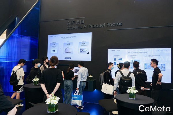 CeMeta展台吸引了AWE参展的众多品牌高层前往体验。其中最受关注的是“AI作图产品”。传统的产品场景图制作方式需要经历选址、布景、拍摄、修图等复杂的流程,成本高、周期长。而在CeMeta AI能力的加持下,作图不必如此麻烦。第一步,上传产品图片;第二步,选择合适的场景风格,AI即刻根据选定的风格创造海量产品场景;第三步,点击AI作图,即可AI合成产品与场景,输出媲美实拍的高品质图片。让作图更好、更快、更省!