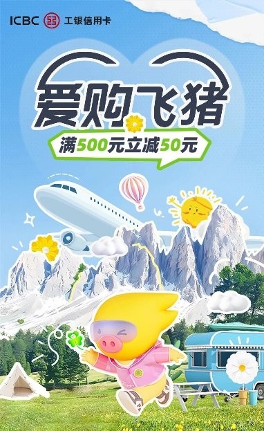 即日起至2023年9月30日,每周六、周日十点开始,客户在飞猪旅行APP、同程APP或同程微信小程序下单,使用支付宝绑定工商银行信用卡支付时,单笔实际支付金额满500元有机会立减50元,同一用户活动期间可参与1次,名额有限,用完即止。