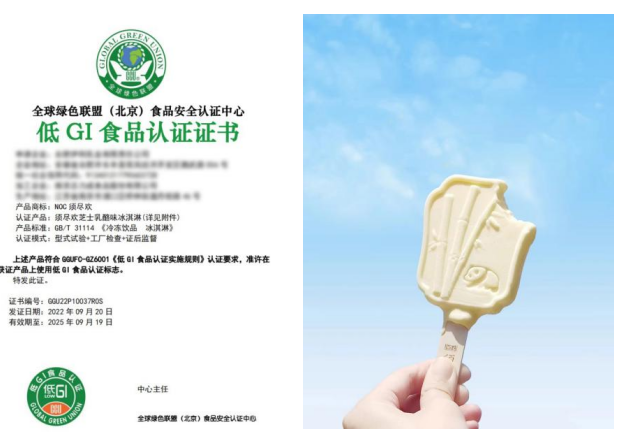 这款产品采用0蔗糖配方,不仅符合《中国居民膳食指南》中控制添加糖的需要,而且通过标准的试验验证,GI值低于55,获得了绿色联盟低GI食品认证。做到科学精准控糖的同时,轻·浮云芝芝还保留了高品质冰淇淋特有的舌尖愉悦感,芝士乳酪风味,咸香浓郁,百分百鲜牛乳,不添加一滴水,给消费者带来更轻盈无负担的高端奶冰新体验。