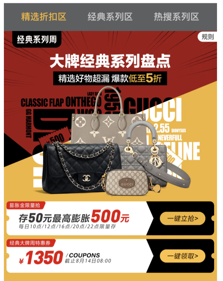 8月9日-8月14日,国内循环时尚生活方式平台红布林推出大牌经典系列周活动,精选Louis Vuitton、GUCCI、CHANEL、Herms、Christian Dior等经典奢侈品大牌,超多好物爆款低至5折,还可以领取1350元经典大牌周特惠券,更有50元膨胀金限量抢,时髦精赶紧来,入秋的仪式感一定要拉满!