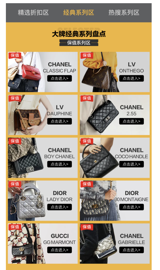 活动期间,在红布林APP上,时髦精最爱的大牌保值系列CHANEL 2.55、 CLASSIC FLAP、BOY CHANEL、COCO HANDLE、GABRIELLE,Louis Vuitton ONTHEGO、DAUPHINE, Christian Dior LADY DIOR、30 MONTAIGNE,GUCCI GG MARMONT、GABRIELLE等应有尽有,从9.9新、9.5新、9.0新到8.5新,总有一款能满足你的期待!