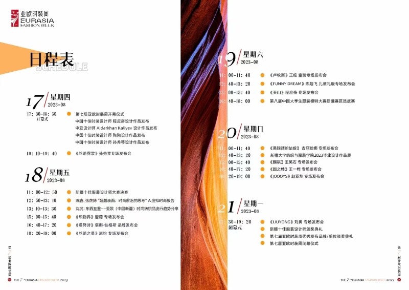 作为2023(中国)亚欧商品贸易博览会专题活动之一,本届亚欧时装周将于8月17日—21日在乌鲁木齐国际纺织品服装商贸中心举行。亚欧时装周在推动纺织服装产业发展、树立品牌意识、引领消费潮流、打造良好营商环境、促进亚欧文化交流、推进丝绸之路经济带核心区建设进程方面发挥着重要作用,已成为“一带一路”沿线国家知名品牌和设计师推广形象、展示创意、传播流行的国际化窗口,为我国与亚欧各国特别是丝绸之路经济带沿线国家共享“一带一路”发展机遇、实现互利共赢创造了更为广阔的空间。