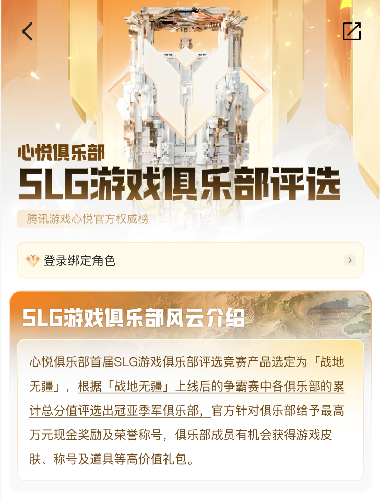 作为腾讯游戏旗下核心用户聚合平台,心悦俱乐部成立以来,一直以“为心悦会员提供高品质游戏、生活等多方面的权益内容体验,助力玩家游戏成长、鼓励玩家分享互动,感受游戏带来的快乐”为宗旨,如今以《战地无疆》为锚点发起首届SLG游戏俱乐部评选活动,同样具有里程碑式的意义。
