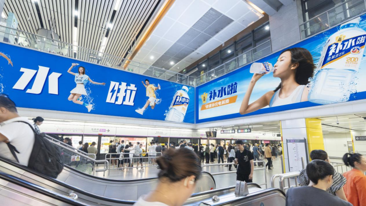 在品牌宣传端,东鹏饮料加大“东鹏大咖”、“东鹏补水啦”等第二曲线产品的品牌宣传,通过分众和新潮梯媒投放、入驻核心地铁包站、投放公交车体、高铁检票口刷屏机等,联手王者荣耀顶尖职业联赛等多种媒介及渠道持续为品牌发声,并牢牢把握对东鹏补水啦进行“汗点”场景饮用教育。