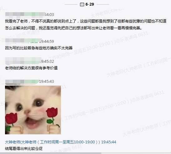 乐者谦鸣的教育团队由大学教授、文化部专家、青年作家代表、畅销剧本作者等超过20名的专业人士组成,可为学员提供全方位的教学支持。学员不仅可以享受到涵盖构思、创作、专题、优化4大教学模块,还有督导一对一地悉心指导,亲自审批检阅、监制改稿,以此构建精细化、标准化、个性化的教育服务体系,确保学员的学习体验和创作成果。这种对学员负责到底,对剧本创作精益求精的态度也是能获得了学员们的一致好评的重要原因。据最新调查统计,目前乐者谦鸣共拥有学员2千余名,月均满意度在95%以上,这无疑是对乐者谦鸣高质量教育服务的最好肯定。