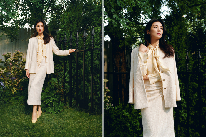 在YINER音儿2023秋冬系列的叙事中,“花园”作为「家」的私密空间外化区域,是花园主人意识层面向外展示的过渡地带,展现了女性柔美的外在形象与坚韧的内在力量。恰如刘涛在多年的演艺事业中,塑造的众多不同背景下的经典女性角色,以百变的形象在多重场所自由切换。生活中的刘涛自信从容,其优雅、大气的风度也深入人心。她游走在演绎角色与表达真我之间,传达着多元化的着装态度。刘涛所展现的都市女性多面魅力,与YINER音儿品牌始终探索都市女性多样化着装需求的理念不谋而合。