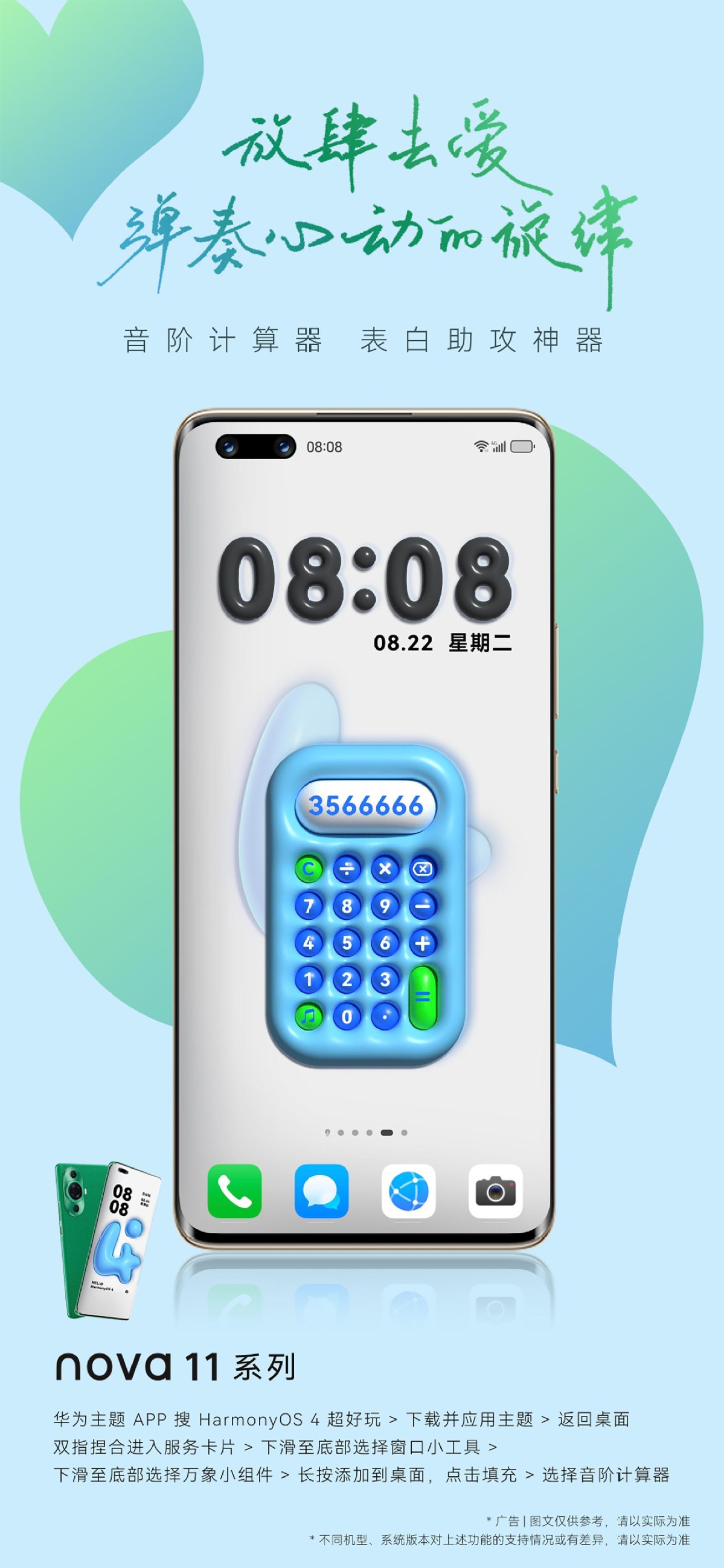 给手机穿上“情侣装”过个氛围感满满的七夕。打开华为主题App免费下载最近超火的《HarmonyOS 4 超好玩》主题,锁屏的计算器组件可以弹奏表白曲。七夕期间,华为主题还会上线“七夕情侣主题专区”,超多好看又有趣的情侣手机主题,总有一款是你们的“约会搭子”,选择一款喜欢的风格一起用,两个人手机同时亮屏的时候,就是心动的瞬间!