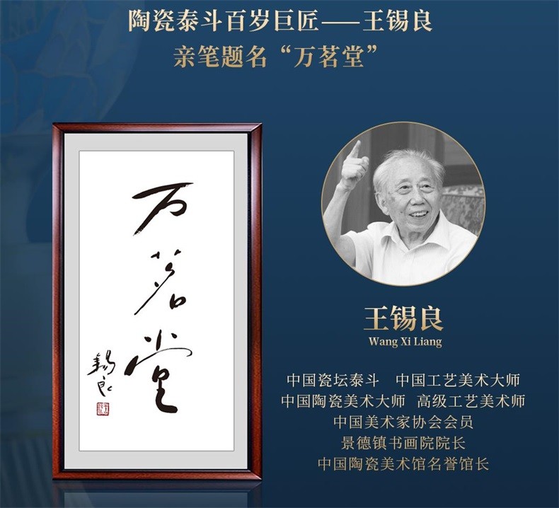 “万茗堂”品牌之名由百年巨匠、一代宗师,中国陶瓷泰斗、陶瓷界首位工艺美术大师王锡良于百岁寿诞之际,亲笔所题,彰其传承。酒盒内侧有中国国家画院院委、研究员、中国美术家协会理事张江舟亲笔所题的“何家美酒醉芳菲,揽入琼浆万茗堂”诗句,其中的诗意与画意、欣赏价值与文化内涵相浸染,使其在一众白酒中脱颖而出。