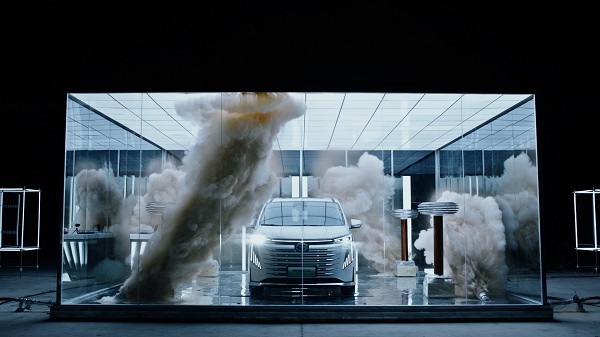 广汽传祺E9则模拟了沙尘暴、电击和高温三种末日环境的“生态仓”内迎接来自窒息沙尘、电流过载、高温爆炸冲击挑战,分别展现其强大的净化功能,密封性能,降噪能力,及包括弹匣电池在内的多项安全技术;