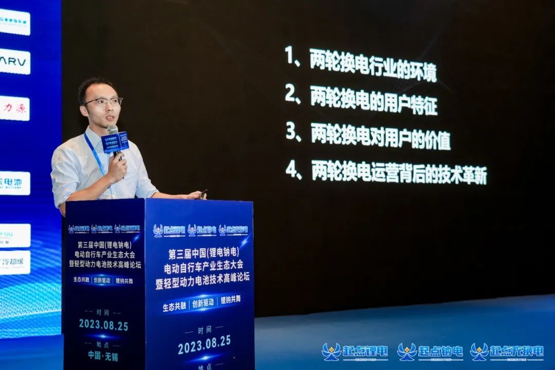 智租换电首席运营官李骥在大会上作《两轮换电运营背后的技术革新》主题演讲。