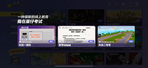 以教学为载体,实现教育目的。借助《蛋仔派对》地图创作,家长能收获到孩子的正反馈。从过程来看,UGC 地图作为虚拟教学主体,激发孩子去探索和创造,寓教于乐。同时游戏主动挖掘,展示和推荐有价值的作品,放大孩子成就感之余,也能带动和鼓励更多用户参与创造,从娱乐中创造、从创造中学习。例如,游戏内UGC地图的每日推荐专题页会以日更方式推荐不同的地图主题,从弘扬戏曲、书法等传统文化到展现古诗词里的中式浪漫,甚至还有作者将驾考模拟考场,全国高考卷搬进了地图中,展现出UGC地图中丰富的教育科普价值。