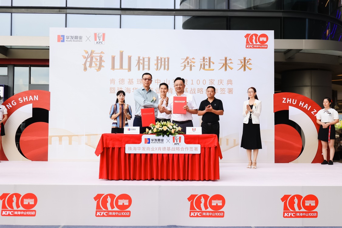 8月28日,肯德基珠海中山第100家店在珠海金湾华发国际正式开业,标志着肯德基在珠海中山的发展迈向了一个新的里程碑。在庆典仪式上,珠海华发商业经营管理有限公司(以下简称“珠海华发商业”)与珠海肯德基正式签订战略合作协议,双方将秉持深化多元领域合作,共同迈进互利共赢、快速发展的新征程。