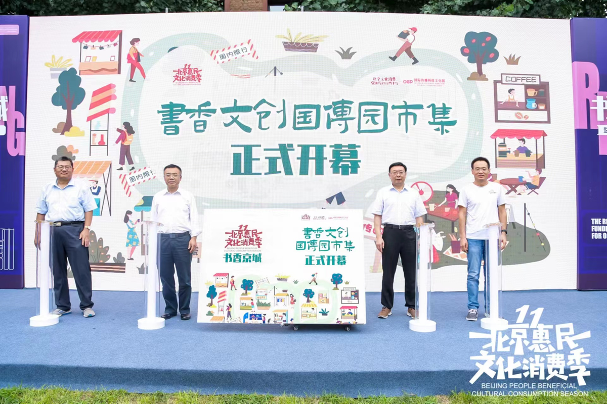 此外,作为本届惠民文化消费季书香板块的优质重点活动,由中国外文局指导,中国国际图书贸易有限公司和北京惠民文化消费季联合主办的首届书香文创国传园市集于当天同步开幕。市集将于8月25日至9月3日在国际传播科技文化园举办,立足国际传播特色定位,主打多语种图书、海内外文创等大文化产品,汇聚100余家图书文创品牌和20余场文化活动,打造书香阅读与娱游体验相结合的大文化盛会。中国外文局副局长刘大为、市文资中心规划发展处(产业促进处)处长吴锡俊、北京市发展和改革委员会二级调研员刘登阁、北京广播电视台生活频道中心副主任白艳军共同为书香文创国传园市集活动启幕。