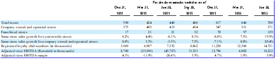 报告期内, Tims天好中国继续推进独特的加盟策略,拓展布局在经营上更灵活、高效的Tims Express店型,持续扩大品牌规模。截至2023年6月30日,全国门店数达到700家,覆盖42个城市。由此也带动用户规模快速增长,截至2023年6月30日,品牌注册会员总数达1470万。