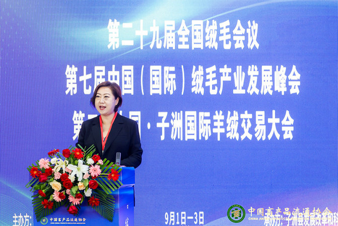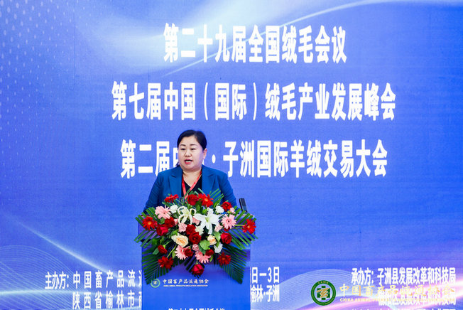 榆林市工业和信息化局副局长高艳丽介绍了全市羊绒毛产业的发展情况、榆林羊绒毛产业发展历程、成就。她指出,未来要将榆林打造成集高端原料、时尚设计、智能化生产、全渠道营销于一体的高端羊绒毛产品生产和集散中心;引导榆林市羊绒毛产业在地域上集中分布,资源上优化配置,推进产业规模化、集约化、品牌化、时尚化、数字化、绿色化、国际化;将榆林建设成为陕西省羊绒毛产业高端制造基地、西部地区羊绒毛产业创新高地、中国功能性羊毛防寒服研制基地、全球优质生态羊绒制品原产地。