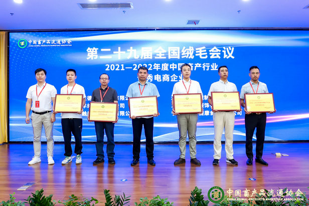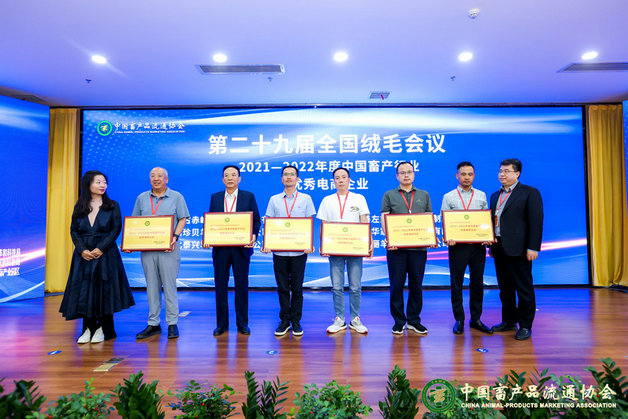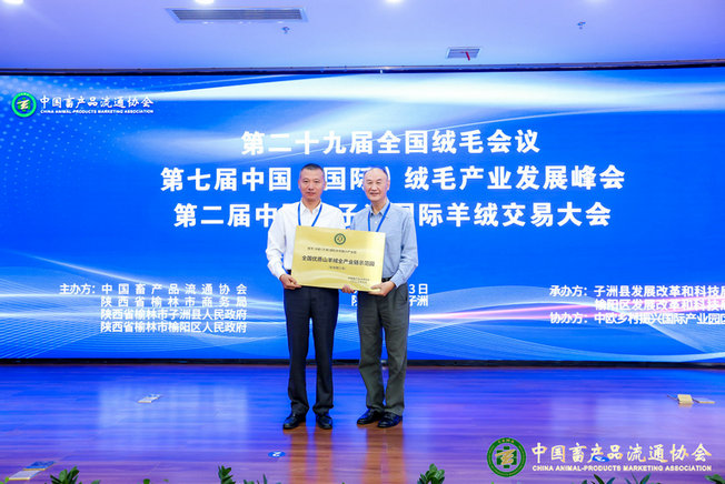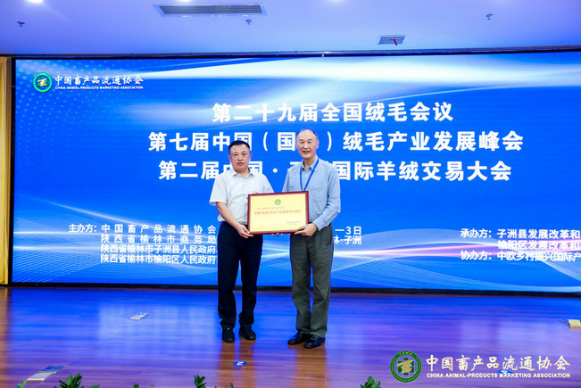 此次会议,中国畜产品流通协会还宣布了子洲县冠名“中国(子洲)优质山羊绒县”、中欧(子洲)国际乡村振兴产业园冠名“全国优质山羊绒全产业链示范园”的决定并授牌。并授予榆阳轻纺产业园为“中国(榆林)绒毛产业发展试行园区”;内蒙古赤峰东黎羊绒股份有限公司等13家企业被授予2021-2022年度中国畜产行业优秀电商企业;陕西应马安绒山羊养殖有限公司等4家企业被授予 2021-2022 年度中国绒山羊优秀种源基地。