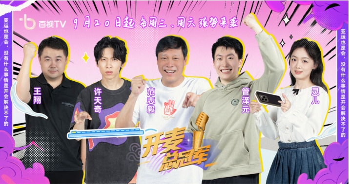 体育大赛总是娱乐节目的话题造波机。本周三(9月20日),以传递快乐、积极的体育精神为主旨的体育综艺节目《开麦总冠军》将在百视TV上线新一季。共计六期的节目将随着杭州亚运会的进行,为观众带来持续的“语言+体育”欢乐之旅。