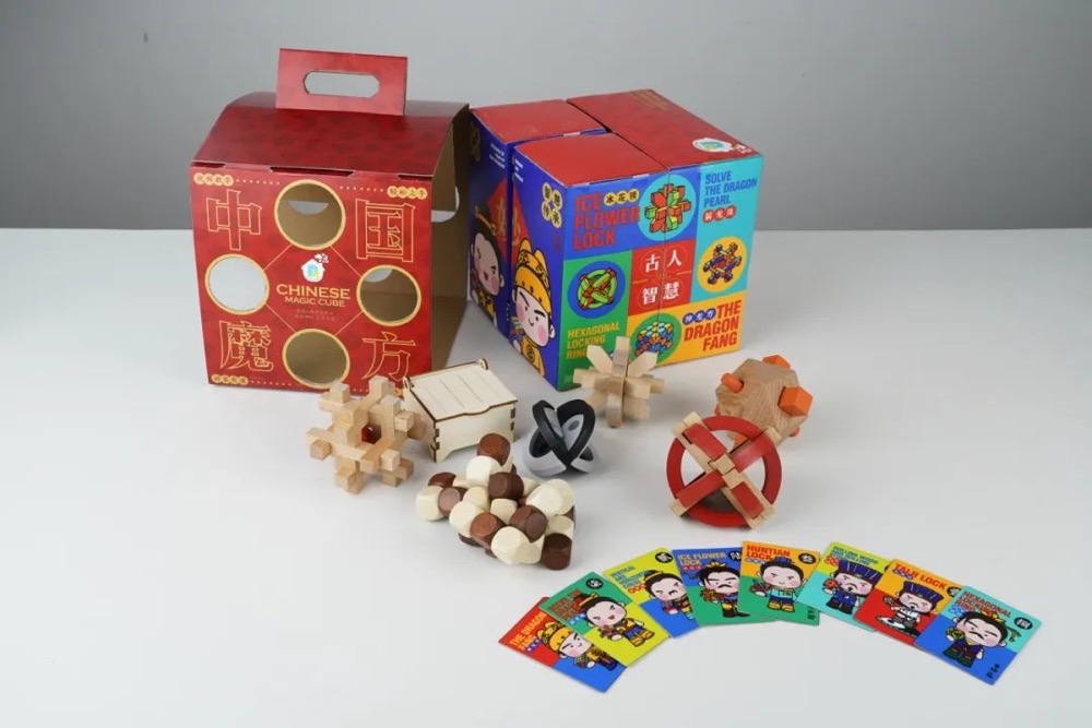 包装盒内暗藏八个关卡,卡牌扫码解锁通关视频,通过观察、记忆、思考、解锁玩具时空交互带玩家体验古人智慧,解锁开悟。