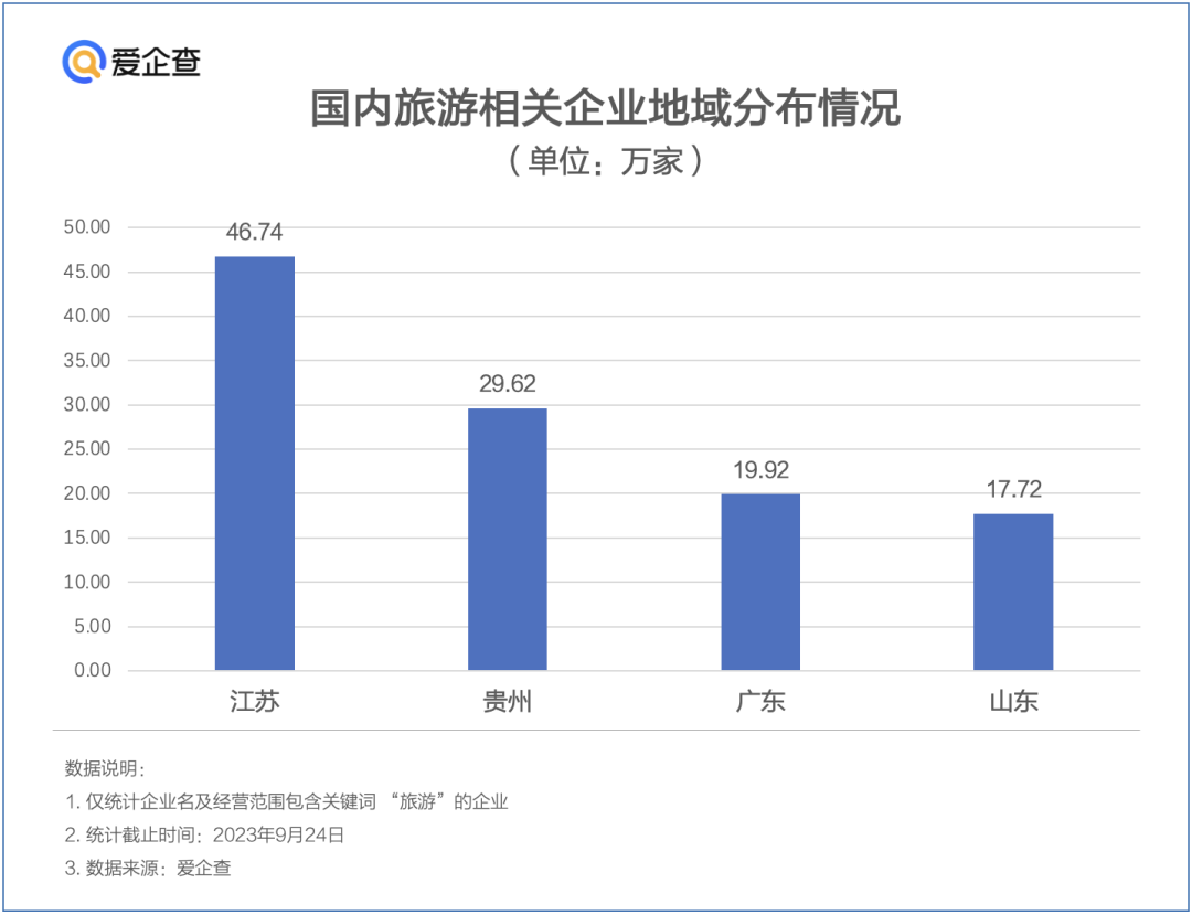 文旅产业活力迸发,少不了众多市场参与主体的合力推动,旅行相关企业在其中也贡献了不小力量。据爱企查APP显示,截至目前,国内企业名称及经营范围中包含 “旅游”的企业有超280万家,其中,2023年1-9月新增注册企业22万余家,已经远超去年全年的注册总量。