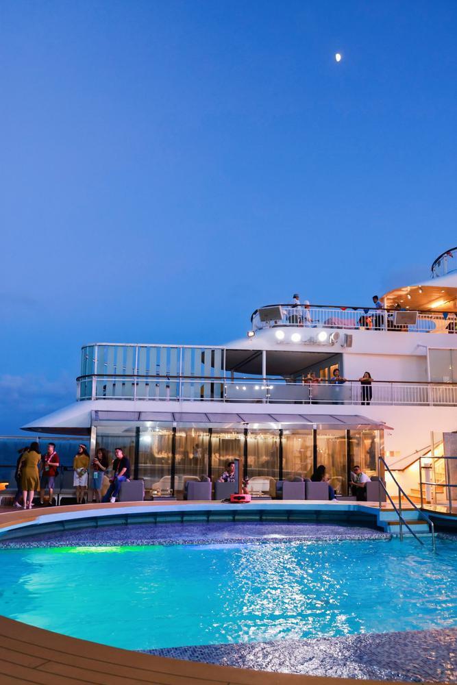 首航的游客们在甲板露天泳池悠闲欣赏海上风光(受访者提供)