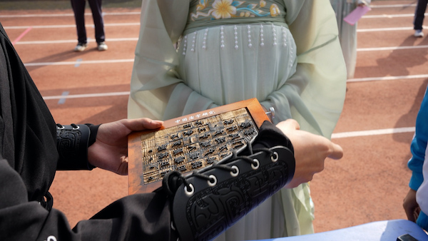 同学们的表演异彩纷呈,“木兰从军”传承孝道、“学生拜师”彰显师道,展现了中华五千年厚重的精神底色;兰亭雅集展现诗文风流、屈原劝谏彰显国家大义、三国故事强调忠义两全,展示了中华五千年光辉灿烂的文化品格;茶艺书法展现仁礼思想,皮影京剧演绎经典故事,舞龙舞狮传承华夏精神,活字印刷、中医文化彰显中国智慧,展示了中华五千年高尚典雅的东方审美。