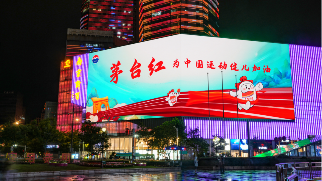 值此盛时、盛世,茅台股份与翰宗数码传媒强强联手,霸屏登录南京三大知名商圈,围绕中秋、国庆“双节”与杭州亚运盛会,开启绝美城市灯光秀,为全市人民带去温馨祝福,也为中国亚运健儿们加油打气。