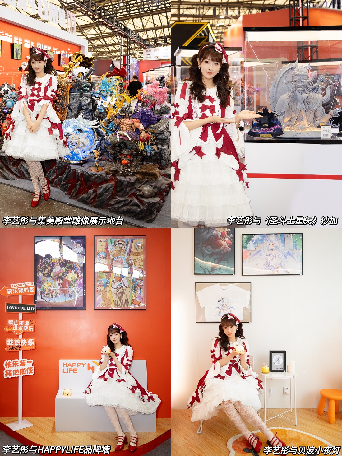 本次WF展会现场,迎来了一位人气偶像、中国内地流行乐女歌手、影视演员——李艺彤。作为虚拟偶像“夜王莉莉丝”的仆人,李艺彤在当天,身着红色洛丽塔裙装,现身在集美殿堂和 HAPPYLIFE展区,以应援团的身份出席了此次展会。看展过程中,集美殿堂的工作人员向李艺彤介绍了此次展会展出的模型,李艺彤当场也表示对模型十分感兴趣;随后HAPPYLIFE工作人员也向其介绍了HAPPYLIFE展区内与IP相关的生活家居类展品,以及后续与“夜王莉莉丝”形象达成的品牌合作的监修产品展示。