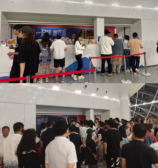 而在盼盼食品亚运超市和比赛场馆的售卖点,就更能轻易地感受到销售现场的火爆,常常是排起长龙,部分售卖点甚至销售人员刚上完货,不到半刻钟就能售罄,盼盼大受欢迎可见一斑。
