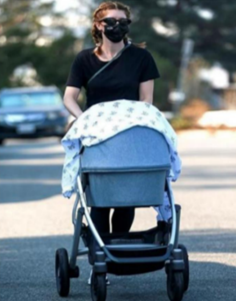 加拿大女演员瑞秋·麦克亚当斯推着UPPAbaby婴儿车带娃出门采购。