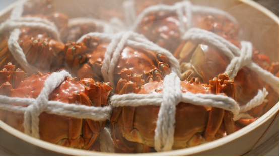 江苏高邮湖地处长江水系,清澈的水质,是养出上乘湖鲜的关键,早在北宋年间就闻名遐迩。每到春季,老周就开始投苗,仔细观察水质、温度、饵料,一丝不苟,兢兢业业,在经过超越一年的悉心养护后终于迎来收获。潜藏在湖里的中华绒螯蟹,经过一年多的生长,完成第18次脱壳,其体型变得硕大饱满,成为金秋餐桌上最具仪式感的美味佳肴。